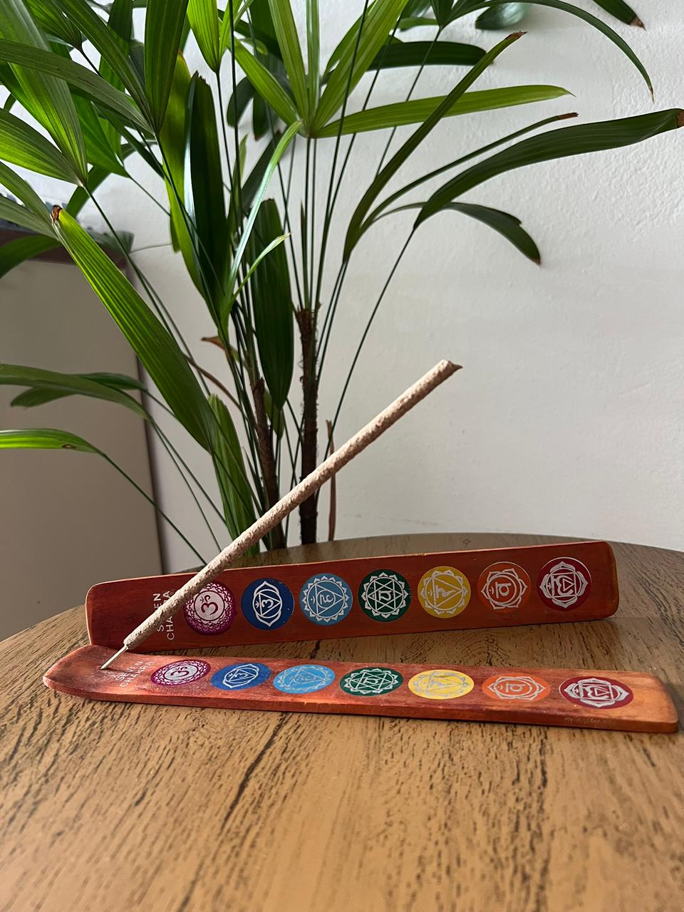 O Incensário 7 Chakras tem a função de dar suporte ao incenso durante a queima, garantindo segurança e organização no uso.