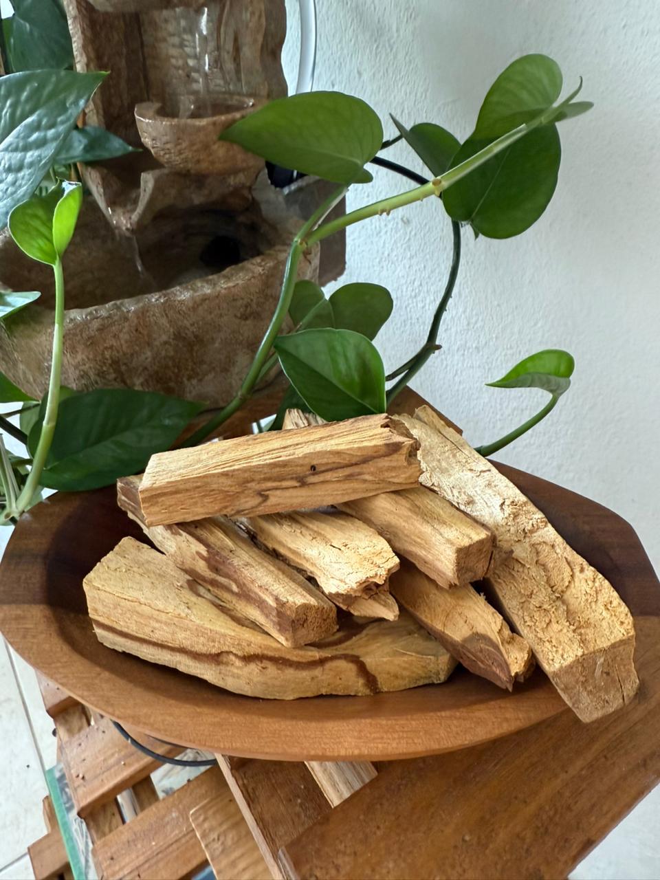 O Palo Santo é uma madeira sagrada utilizada para limpeza energética, proteção e harmonização de ambientes.